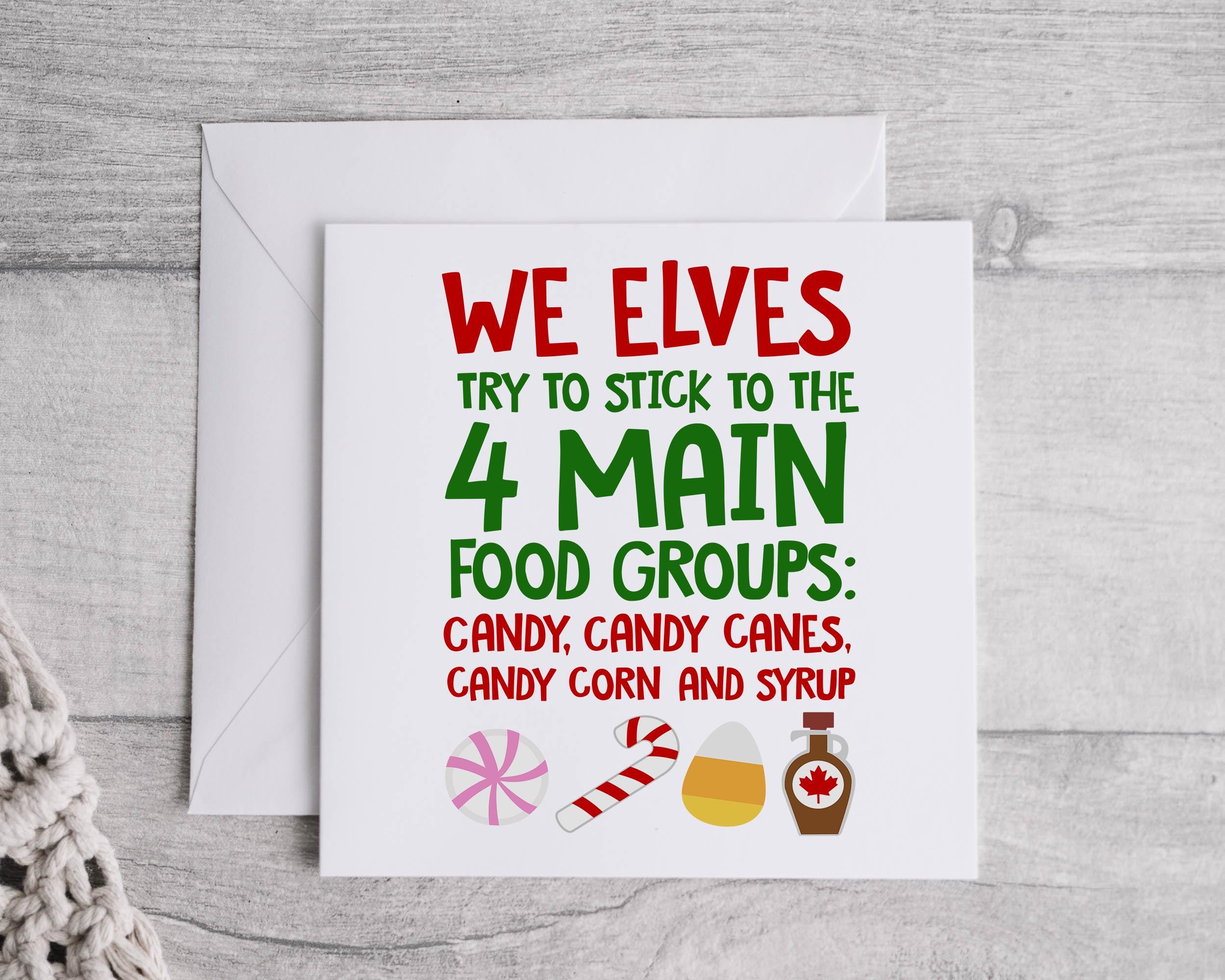 Funny Christmas Card - We Elves have 4 Main Food Groups Design - Fast UK Post