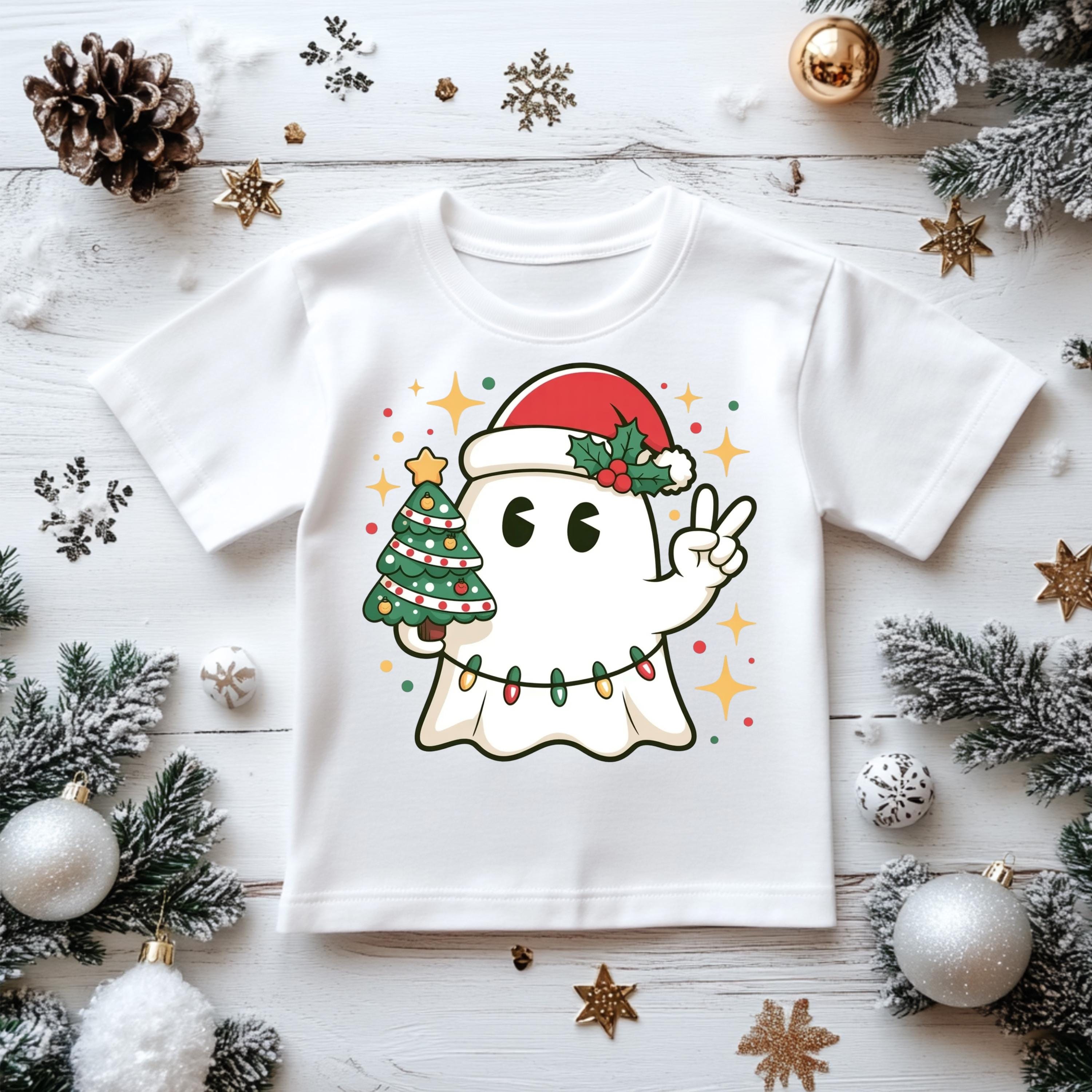 Kids Christmas Shirt: Xmas Ghost & Tree - Gildan Heavyweight Cotton