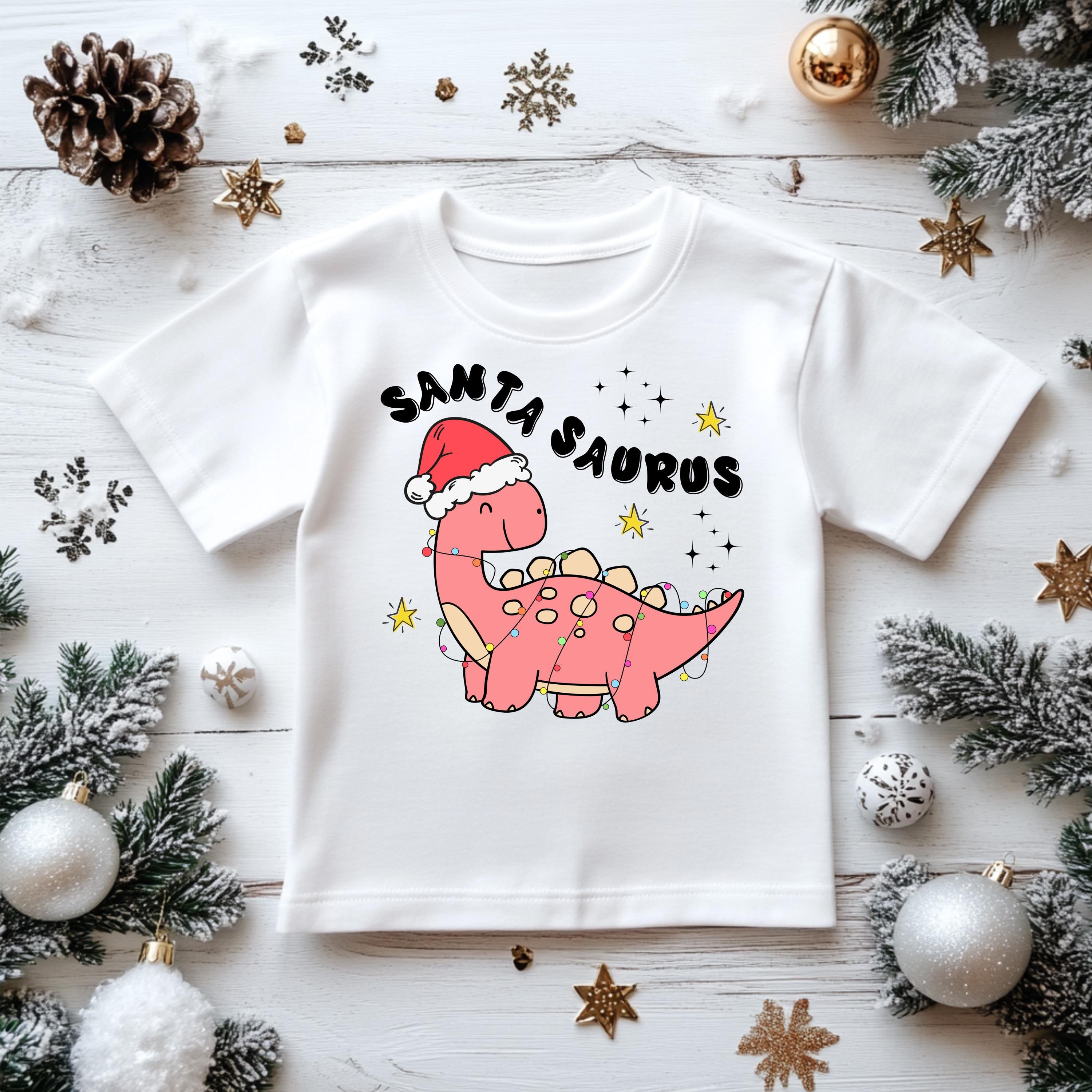 Kids Christmas Shirt: Xmas Santasaurus Pink - Gildan Heavyweight Cotton