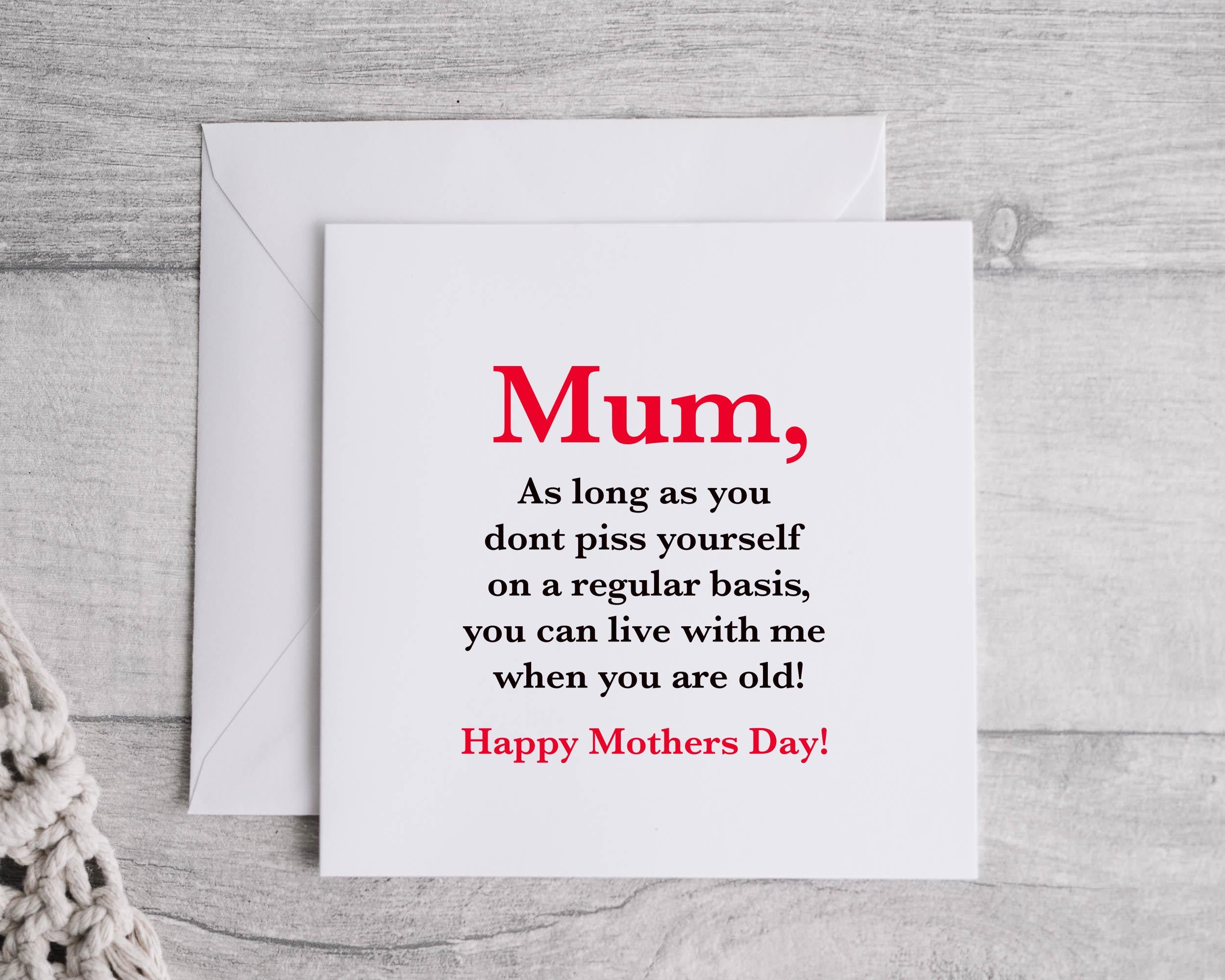 Rude Mothers Day Card - Piss Yourself Design - Funny Card - Fast Postage
